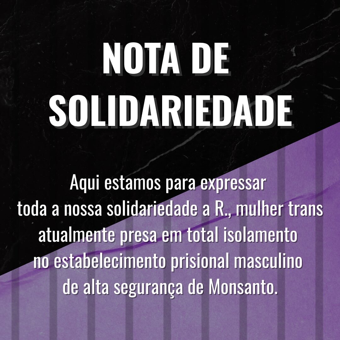 Denunciamos esta transferência e a tortura a que R. está sujeita como expressão brutal da transfobia e da repressão patriarcal e desumanizante do sistema prisional.